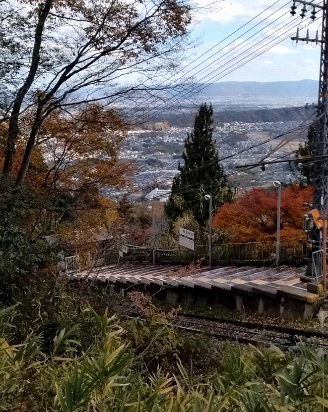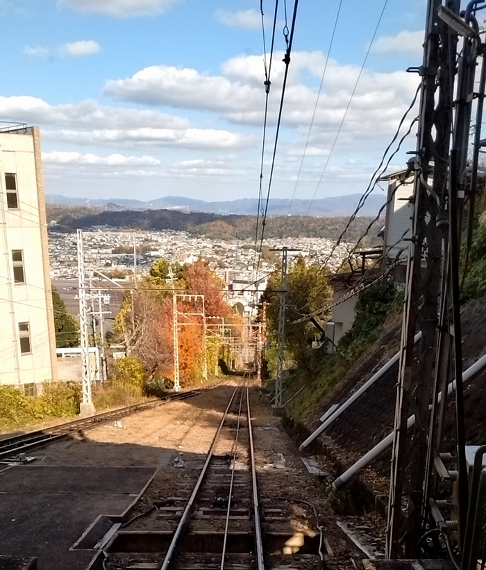 生駒駅下車生駒ケーブルに乗り換えてミケちゃんケーブルカーはグングン上ります