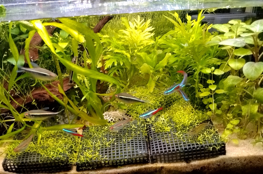 水槽のお世話。お手製リシアネットも順調に新芽が伸びだしました