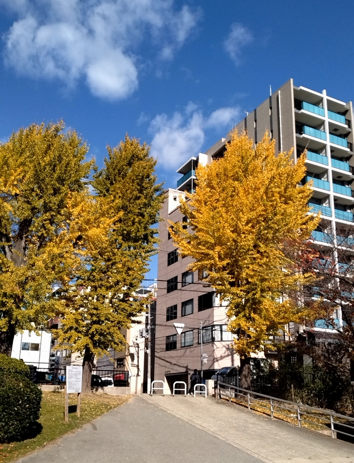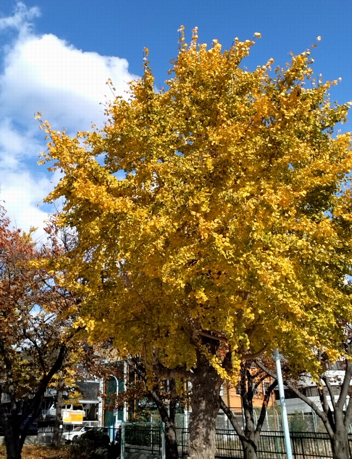 水槽の中は緑一色ですが、冬に向かう時期大川沿いのお散歩ランチで見た銀杏の黄色が美しい