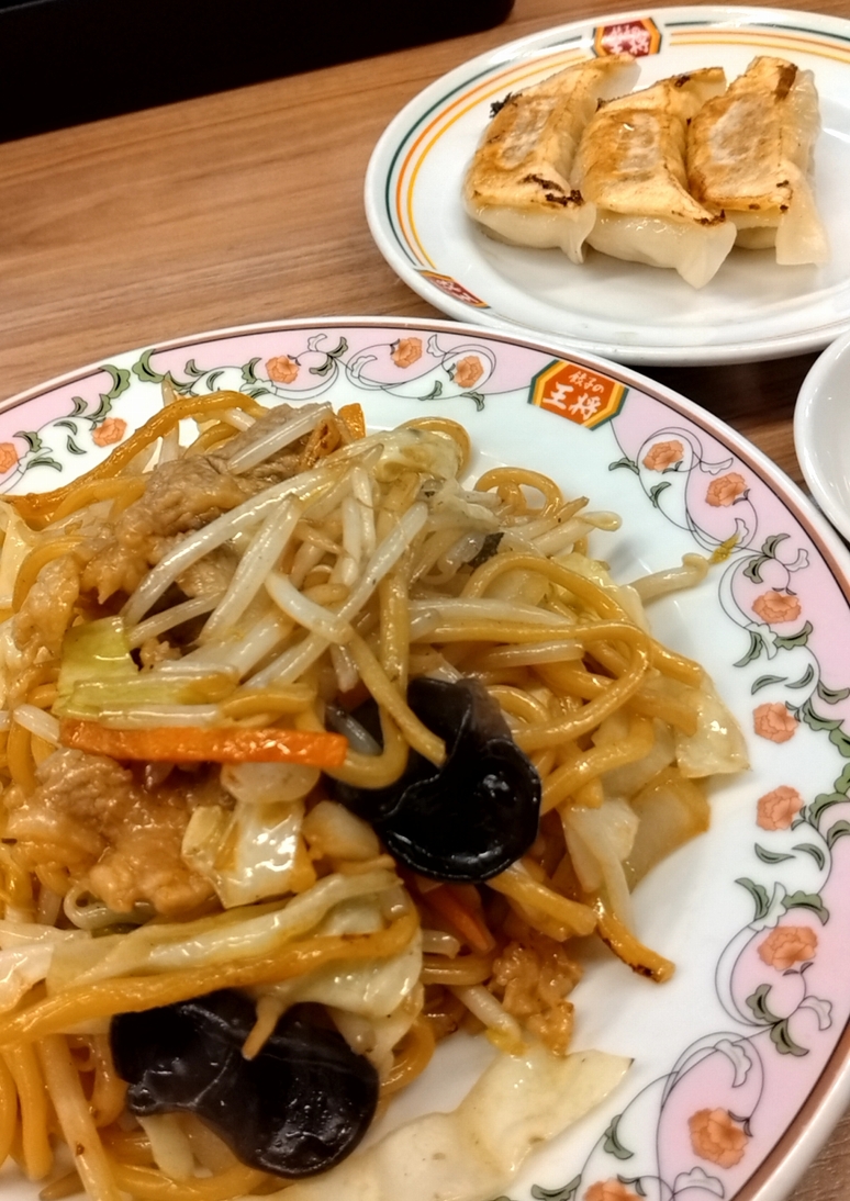 本日のメニューは焼きそばとジャストサイズのゼロ餃子