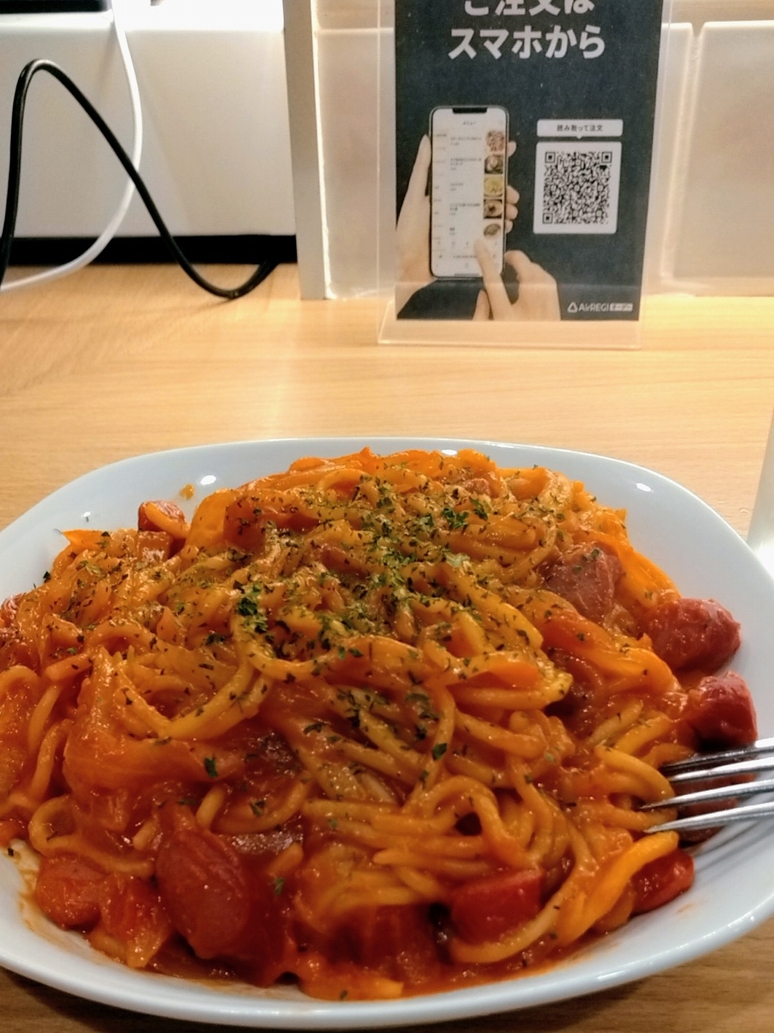 ナポリタンは玉ねぎとウインナーにパスタがどっしり