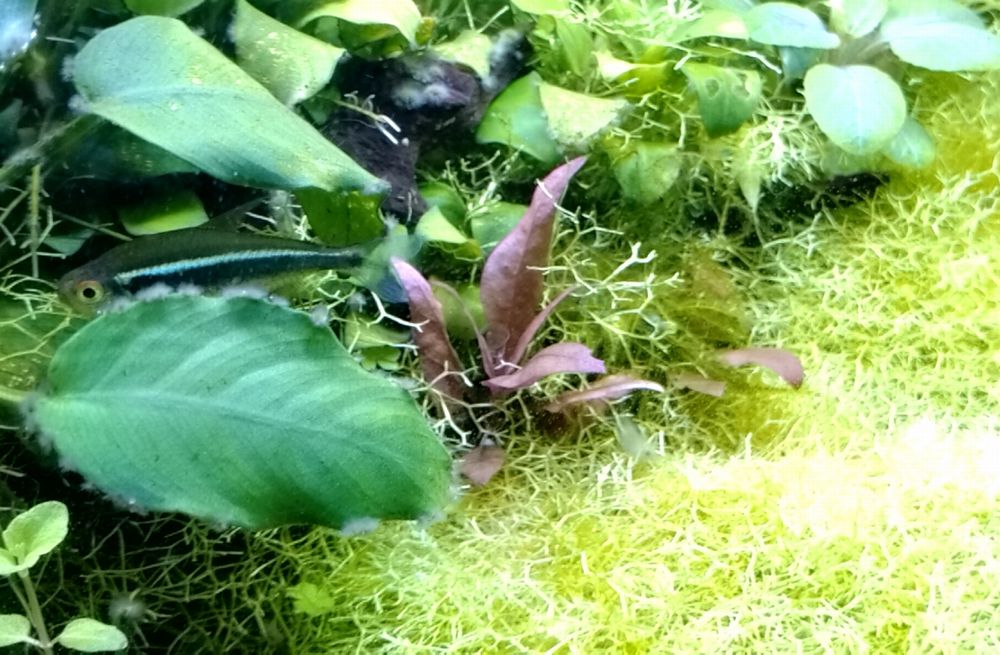 ところがリシアの泡の為ライトを強めに変えたおかげで、成長の遅いアヌビアス・ナナにコケ発生