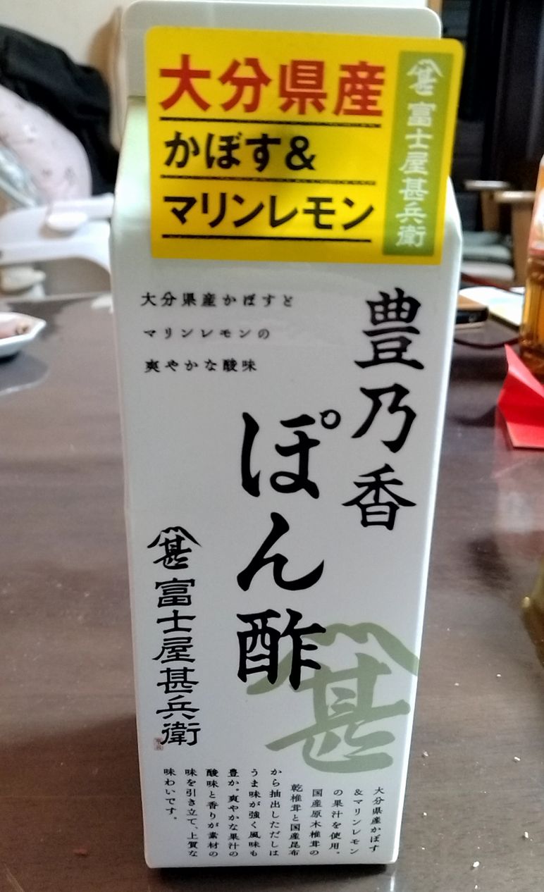 先週末に商店街では大分の観光協会さんのイベントで豊乃香ぽん酢買っておりましたのでお試し