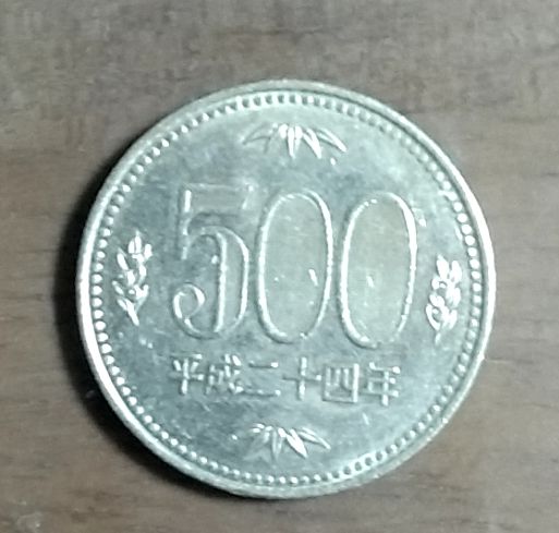 よくよく見ると500円硬貨ですが平成24年、2012年発行の2代目の500円硬貨