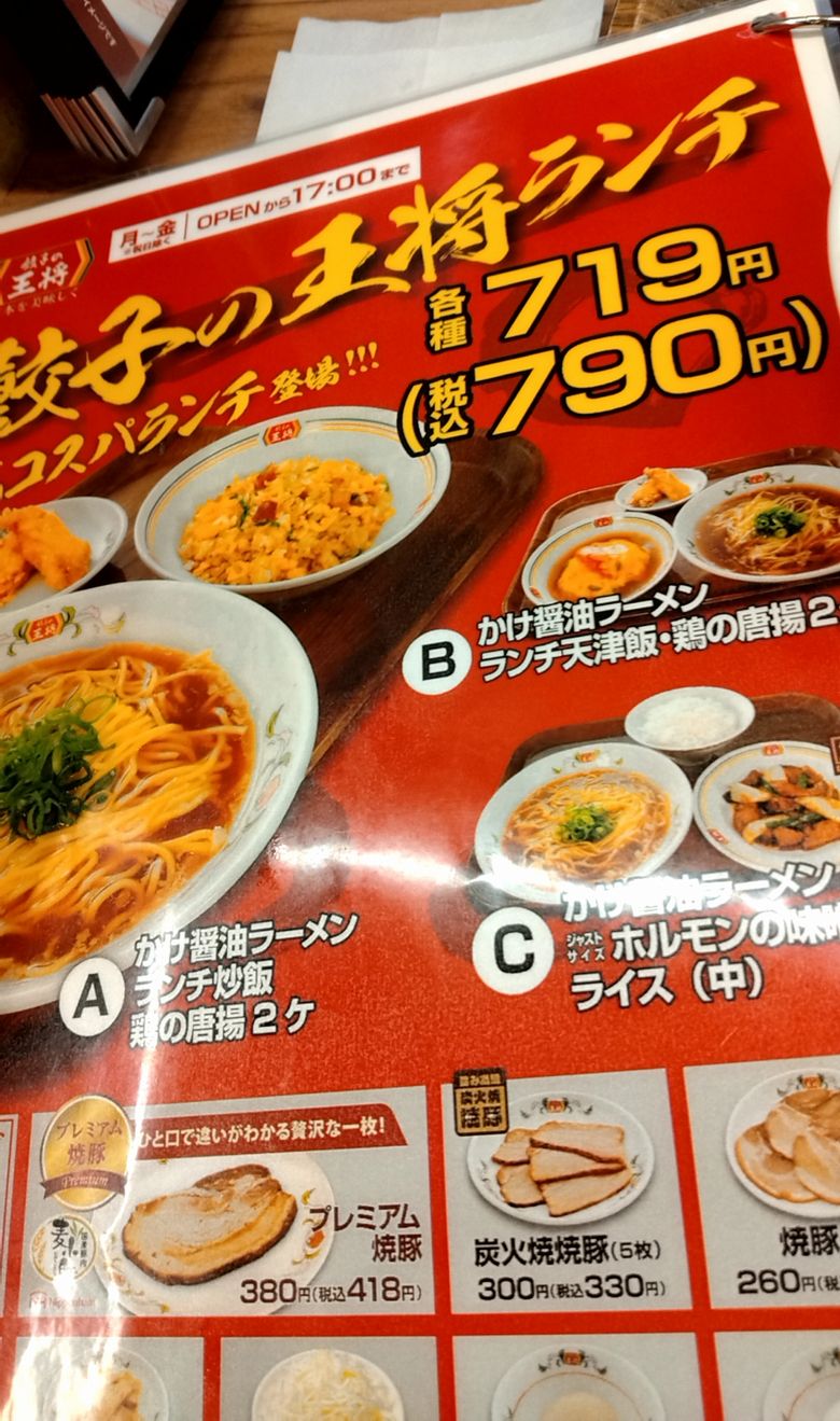 時間も押しておりますので近場で早い旨い安いの王将さん