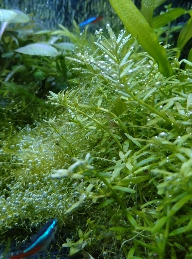 水草が少々伸びすぎているようですが、リシアやグリーンロタラからは酸素のバブルもきれいに出ており、このまま水替えだけで済ませることに致します