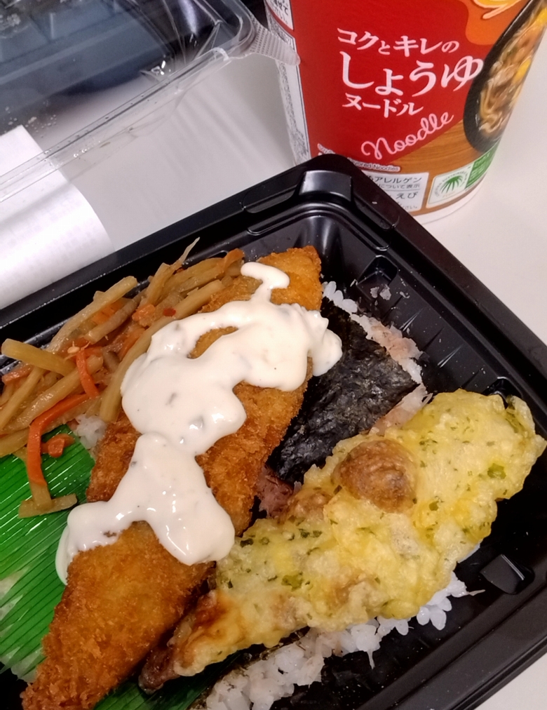 これに備えて3月最初のランチはのり弁とカップラーメン